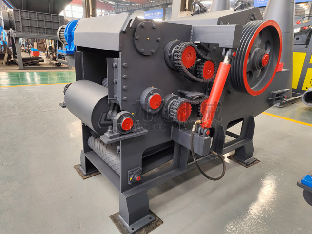 結(jié)構(gòu)組成:木材切片機(jī)由機(jī)體、刀輥、上下喂料機(jī)構(gòu)、送料裝置、液壓系統(tǒng)等部分組成。